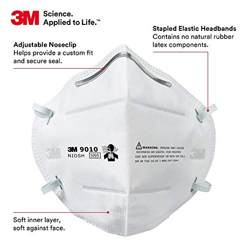 3M 9010 N95 Disposable Particulate Masks, Individually Packaged, 1 Box (50 Masks)