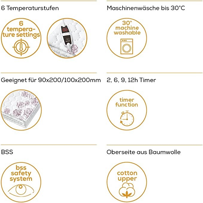 Beurer Burson UB 75 hot unterbett electric blanket with six temperature levels, fast heating and schnellheizung, machine washable