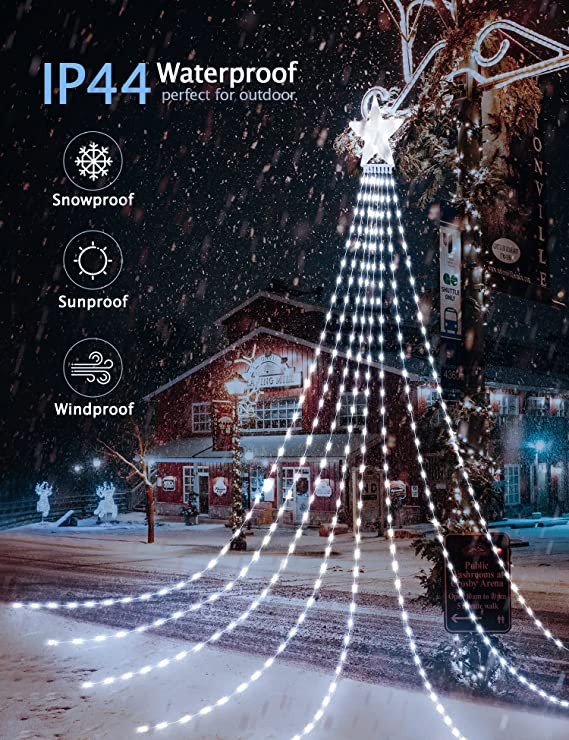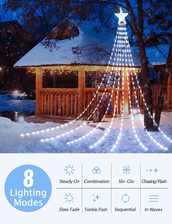 This Christmas decoration includes a 12-inch star with a tail of 8 light strings, each 11.5 feet long, just like a comet. Hang it from a tree or the roof to décor your yard or garden. Bring a pleasant atmosphere to your Christmas.