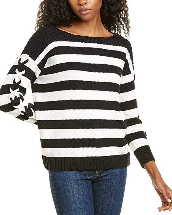Cynthia Steffe CeCe Striped Boat Neck Sweater, Dark Black, Size S