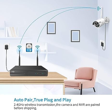 The wireless video security system is easy to set up and DIY installation (requires DC 12V plug power), these WIFI cameras are paired with NVR at the manufacturing site.