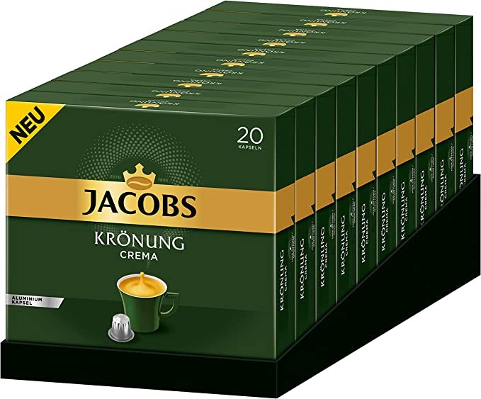 Jacobs Krönung Crema Coffee Capsules, 200 Nespresso Compatible Capsules, 10 Pack, 10 x 20 Cups, 1040 g
