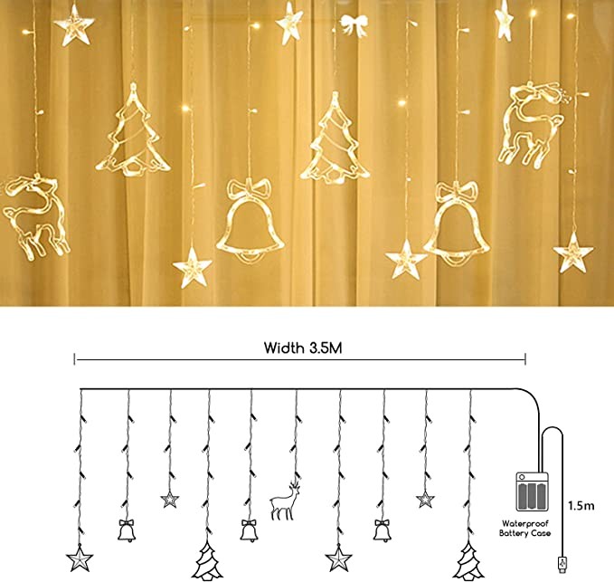 Jsdoin LED String Light Christmas Curtain Light 3.5M Waterproof Fairy Light String Christmas Window Lights 8 Modes Wedding Party Garden Bedroom Decoration USB+Battery Box