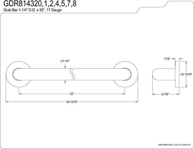 Kingston Brass GDR814321 Silver Sage 32" X 1-1/4" OD ADA Grab Bar, Polished Chrome