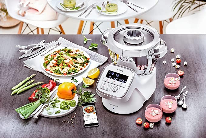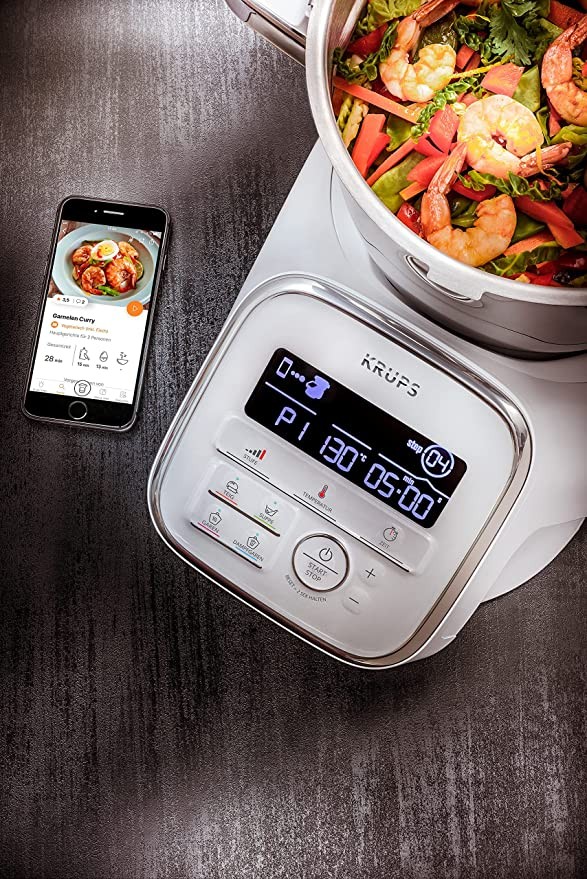 Krups Krupp HP60A1 iPrep & Cook XL Cooking Machine, 1550W, 3L Stainless Steel Bowl, 10 Programs + Manual Mode, 6 Accessories, with App and Bluetooth Voice Control, White
