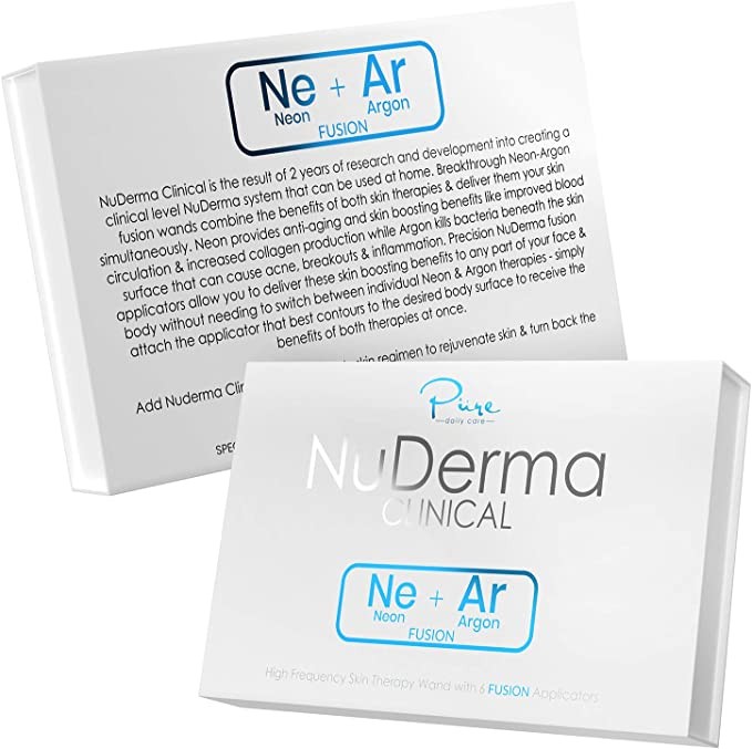 NuDerma Healing Skin Treatment Bars - Portable Handheld High Frequency Skin Treatment Machine with 6 FUSION Neon + Argan Bars - Natural Boosting - Skin Firming - Wrinkle Reduction - Facial Skin