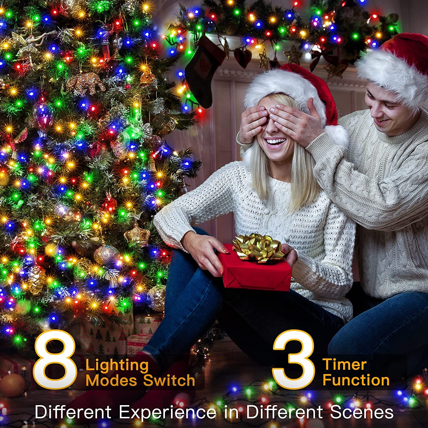 • 【8 Lighting Modes String Lights】 The outdoor Christmas lights have 8 lighting modes, different lighting effects could be switched by remote, . You can change the light settings depending on your mood. Bedroom string lights also memory function, saving the last mode your set for next time use. Led fairy lights are very bright not only do they add light to a dreary winter day, but they also add a lovely atmosphere, the best gifts for women, gifts for her, gifts for mum