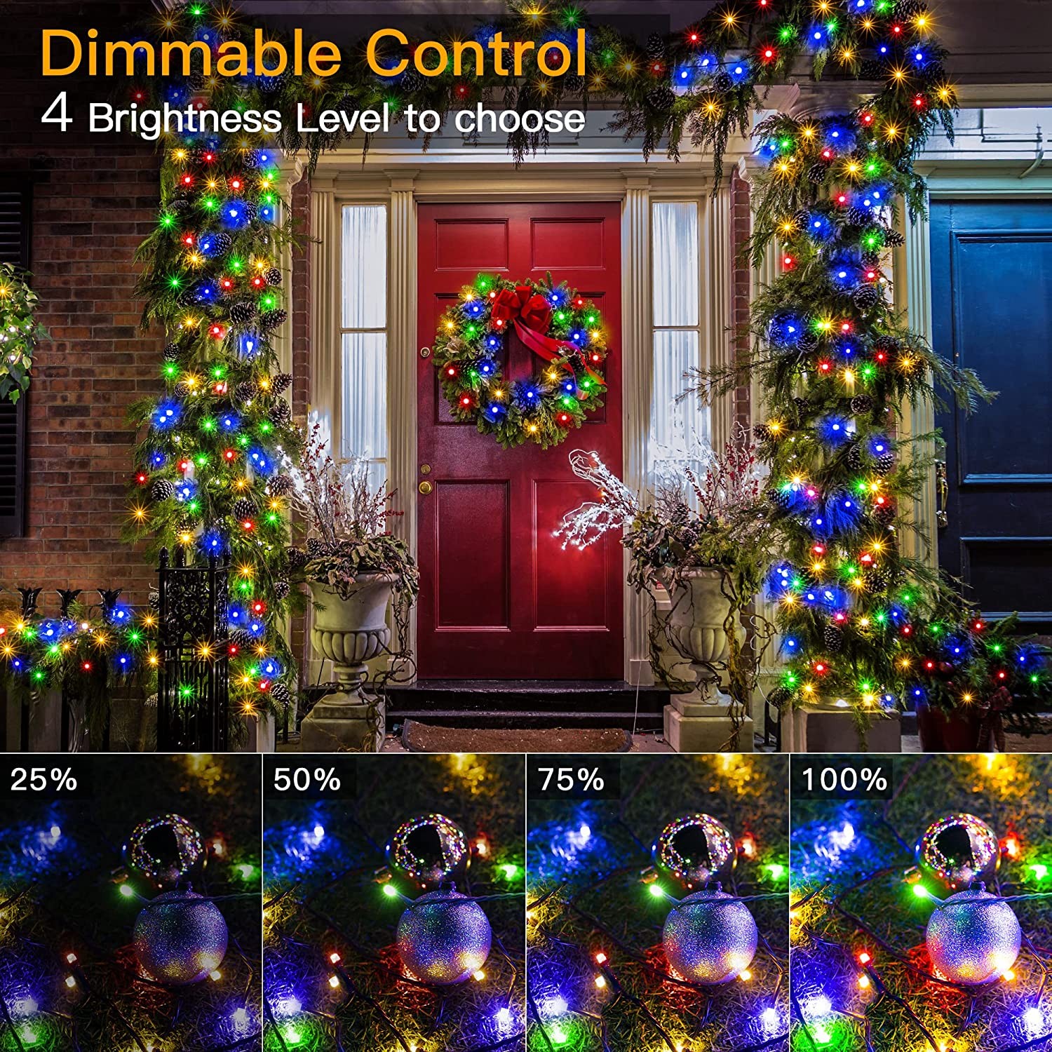 • 【Perfect Christmas decorations】The garden lights for all kinds of Christmas events. You can decorate the bushes and trees in your garden and wrap them around the roof to make your house glow. Use these lights to illuminate the stair railings and the coal fireplace to brighten up an otherwise dull hall. Wrap them around Christmas trees and garlands to enhance the Christmas spirit and make your Christmas stand out from the neighbors! We offer 12-MONTH WARRANTY and 24-Hour Customer Support