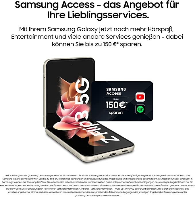 Samsung Galaxy Z Flip3 5G (17.03 cm), Foldable Phone, No Contract, Large 1.9" Display, 256 GB RAM, 8 GB RAM, Cream