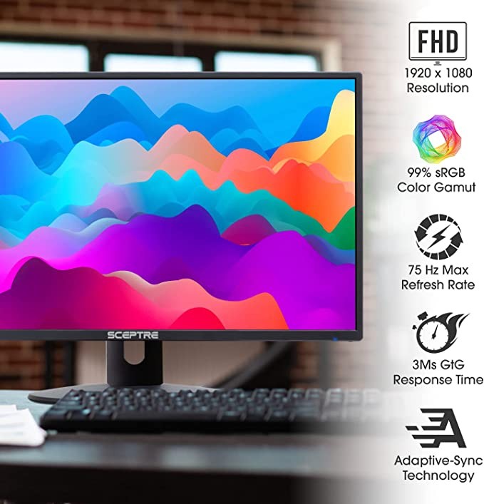 Sceptre 24 inch Professional Low Profile 75Hz 1080p LED Monitor 2x HDMI VGA Built-in Speaker, Black (E248W-19203R Series)