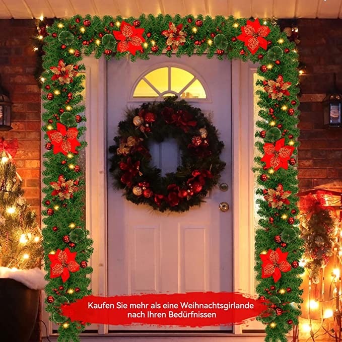 The glowing design on the Christmas flower vine is suitable for night decoration, emitting bright lights, and its unique design is full of Christmas spirit.
